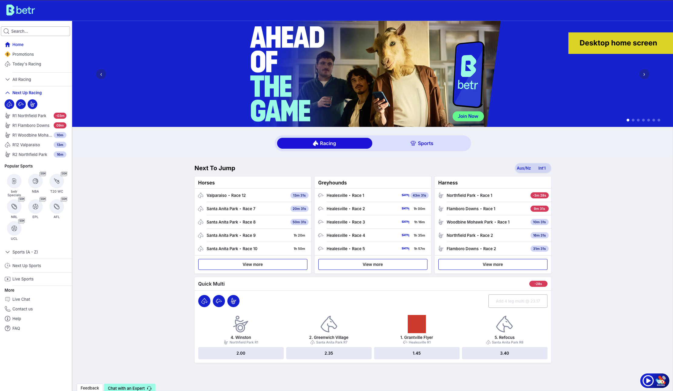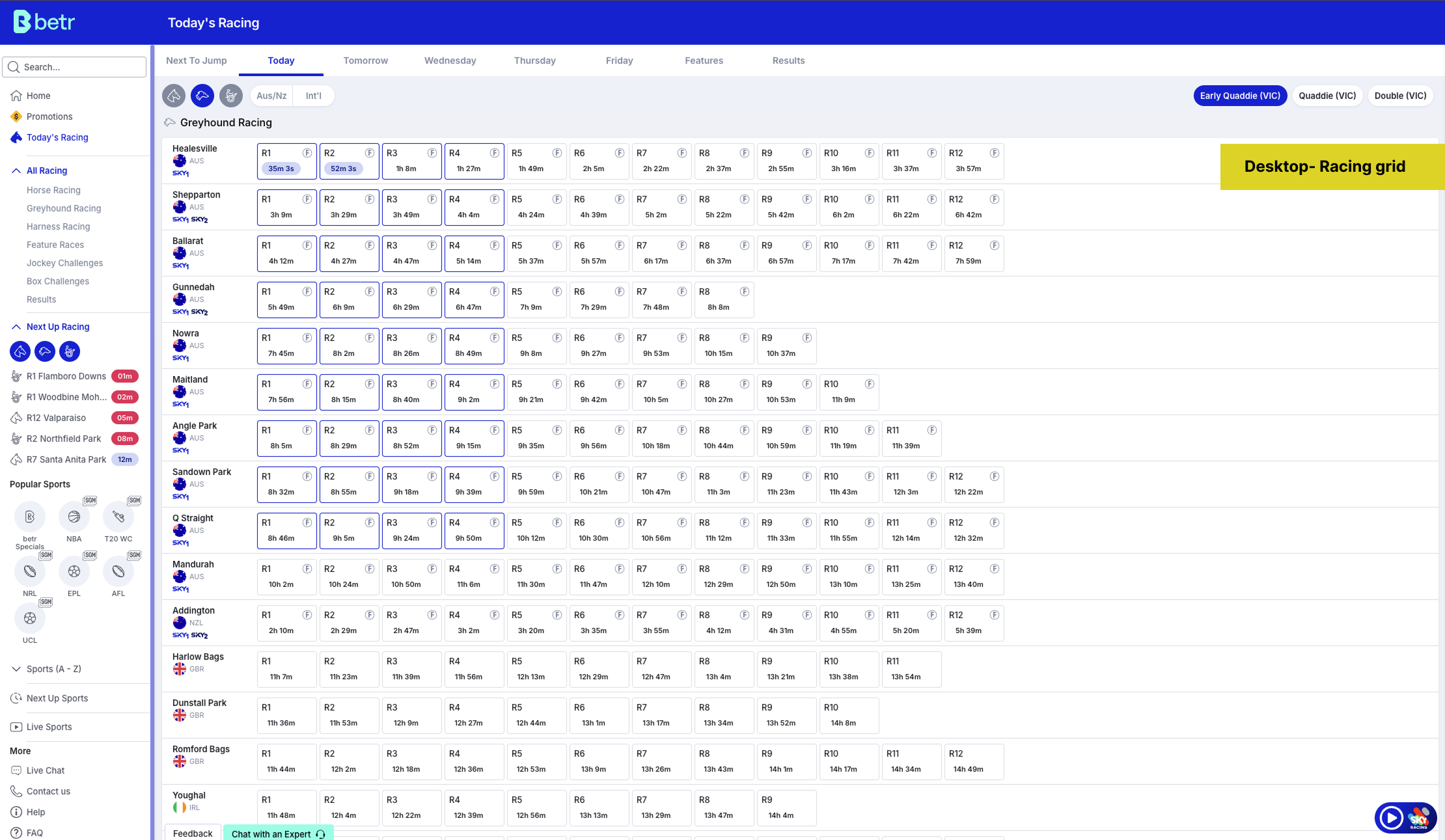 I worked across multiple product surfaces on Betr.com.au, focusing on high-frequency, data-dense betting experiences. Primary ownership was the Race Grid View (desktop), with additional contributions to the Betr Trader platform and general UI/UX improvements across website and mobile web.